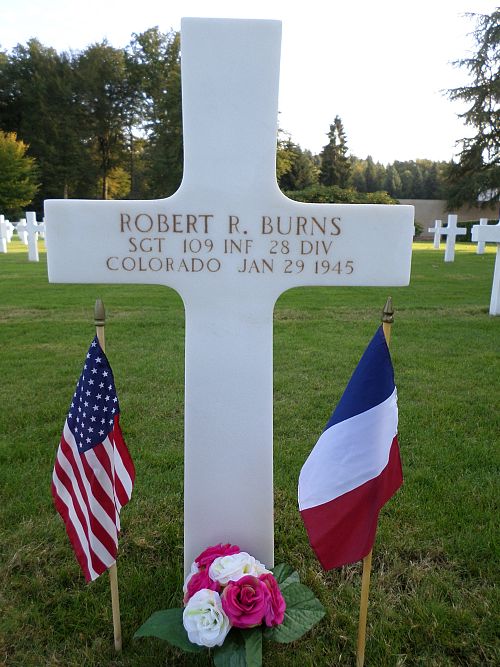 Sgt Robert R. Burns worked on a farm before he enlisted at Fort Logan, Colorado on 31 March 1944.Source of information: Peter Schouteten, Terry Hirsch, www.abmc.gov, www.wwiimemorial.com, www.archives.gov – WWII Enlistment Record, www.ancestry.com - Headstone and Interment Record / Brazell Family Tree / 1920/1930/1940 Census, www.findagrave.com, WWII Draft Card