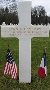 S/Sgt Cameron was first buried in Saint-Péravy-la-Colombe, France on June 14, 1944. Later reburied at Temporary American Military Cemetery Solers, France on May 18, 1945 and Epinal Cemetery on December 13, 1948.