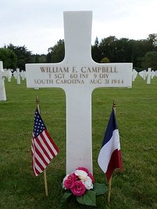 T/Sgt Campbell was first buried at Temporary American Military Cemetery Solers, France.