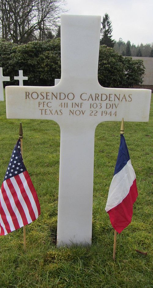 Pfc Rosendo Cardenas enlisted in Houston, Texas on 14 July 1941.He is mentioned on a monument that commemorates the men who died during the liberation on Saulcy-sur-Meurthe.