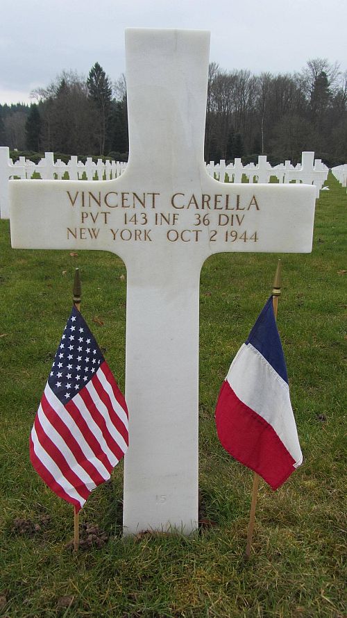 Pvt Vincent Carella enlisted in New York City, New York on 10 February 1943.Source of information: André Koch, www.abmc.gov, www.wwiimemorial.com, www.archives.gov - WWII Enlistment Record, www.ancestry.com - Headstone and Interment Record / 1920/1930/1940 Census / U.S. WWII Draft Cards Young Men