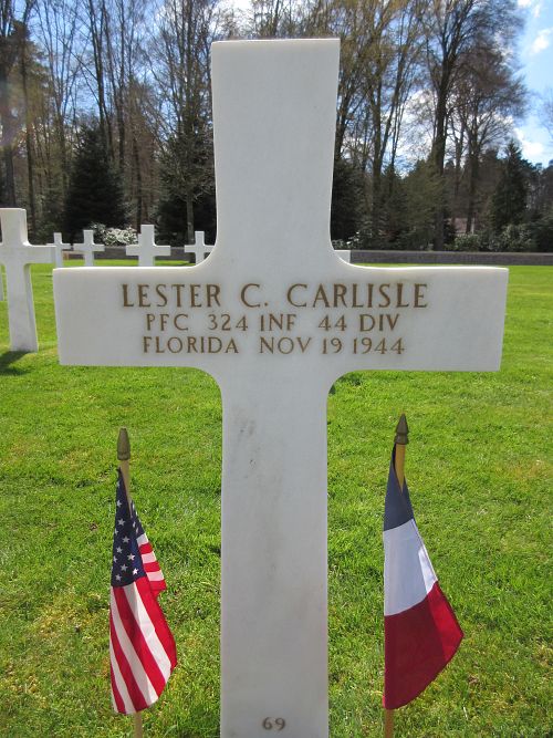 Pfc Lester C. Carlisle was a maintenance painter before he enlisted at Camp Blanding, Florida on 7 January 1943.He was killed by artillery shell fragments on his thigh and arm.