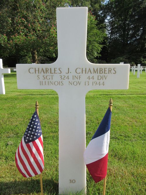 S/Sgt Charles J. Chambers was employed at the American Decalmania Company before he enlisted.Source of information: Peter Schouteten, www.abmc.gov, www.wwiimemorial.com, www.ancestry.com - Headstone and Interment Record / 1930 Census / Cook County Birth Certificates Index / U.S. WWII Draft Cards Young Men, www.findagrave.com