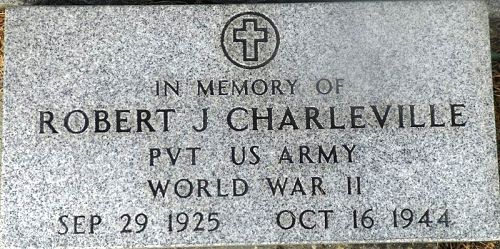 Pvt Robert J. Charleville enlisted in Lafayette, Louisiana on 22 December 1943.He is remembered at the Saint Joseph Cemetery in Grosse Tete, Iberville Parish, Louisiana.
