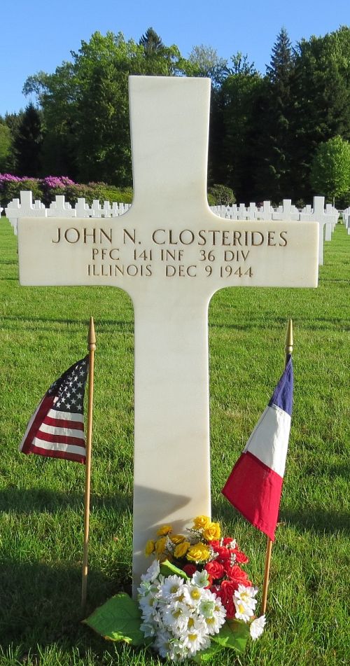 Pfc John N. Closterides enlisted in Chicago, Illinois on 15 December 1942.Source of information: André Koch, www.abmc.gov, www.wwiimemorial.com, www.archives.gov - WWII Enlistment Record, www.ancestry.com - Headstone and Interment Record / 1940 Census / U.S. WWII Draft Cards Young Men / Cook County, Illinois Birth Index / https://36th-id.frb.io