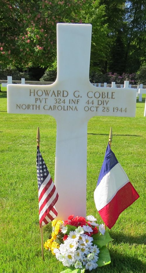 Pvt Howard G. Coble was employed by Blue Bell when he enlisted on 1 December 1943. He was sent overseas in August 1944.Source of information: Peter Schouteten, www.abmc.gov, www.wwiimemorial.com, www.ancestry.com - Headstone and Interment Record / Dennis Family Legacy / U.S. WWII Draft Cards Young Men / 1930 Census, www.findagrave.com – Sleeping Dog