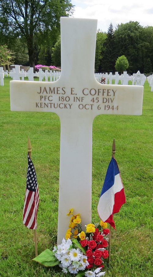 Pfc James E. Coffey enlisted in Fort Oglethorpe, Georgia, on 31 July 1943.Source of information: Peter Schouteten, www.abmc.gov, www.wwiimemorial.com, www.archives.gov – WWII Enlistment Record, www.ancestry.com - Headstone and Interment Record / SLBP Family Tree, http://www.45thdivision.org, www.findagrave.com
