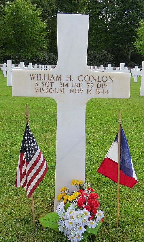 S/Sgt William H. Conlon was employed at the Chicago Burlington and Quincy Railroad before he enlisted on 22 June 1942. He was sent overseas in March 1944.Source of information: Peter Schouteten, www.abmc.gov, www.wwiimemorial.com, www.ancestry.com - Headstone and Interment Record / U.S. WWII Draft Cards Young Men / Webb English, Combat History 314th Infantry Regiment, www.newspapers.com - Moberly Monitor Index 4 December 1944