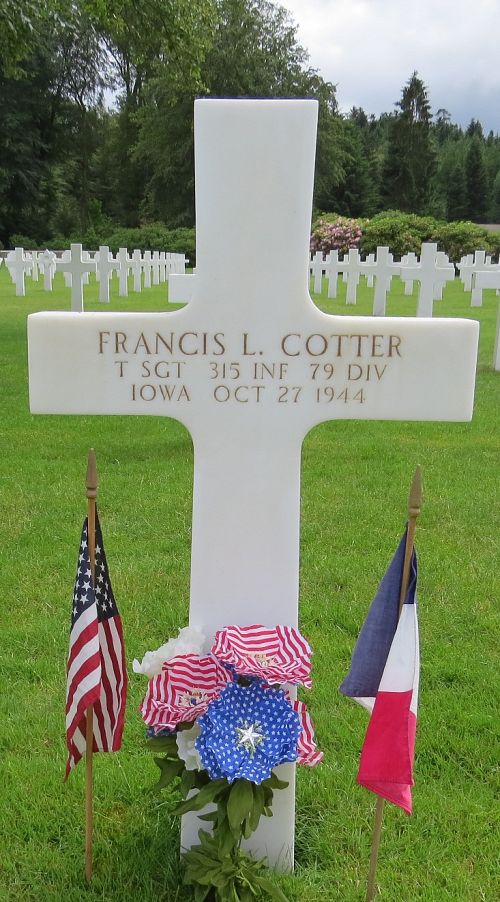 Source of information: Peter Schouteten, www.abmc.gov, www.wwiimemorial.com, www.archives.gov - WWII Enlistment Record, www.ancestry.com - Headstone and Interment Record / U.S. WWII Draft Cards Young Men / Cotter Family Tree / U.S. WWII Hospital Admission Card Files, Combat History 79th Infantry Division, www.newspapers.com - Adams County Free Press 9 November 1944