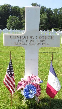 Pfc Clinton W. Crouch attended Centralia Township High School and was a student before he enlisted on 10 March 1943.In February 1944, in Italy, he was wounded by artillery shell fragments at his cheek and thigh. In July 1944, in Italy, he was wounded again by artillery shell fragments at the thigh. He was discharged from hospital in August 1944.