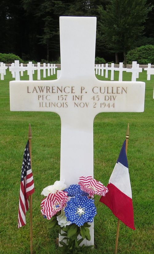 Pfc Lawrence P. Cullen was employed by the Chicago Park District.Source of information: Peter Schouteten, Terry Hirsch, www.abmc.gov, www.wwiimemorial.com, www.ancestry.com - Headstone and Interment Record / Lueder Gundich Family Tree, http://www.45thdivision.org, WWII Draft Card