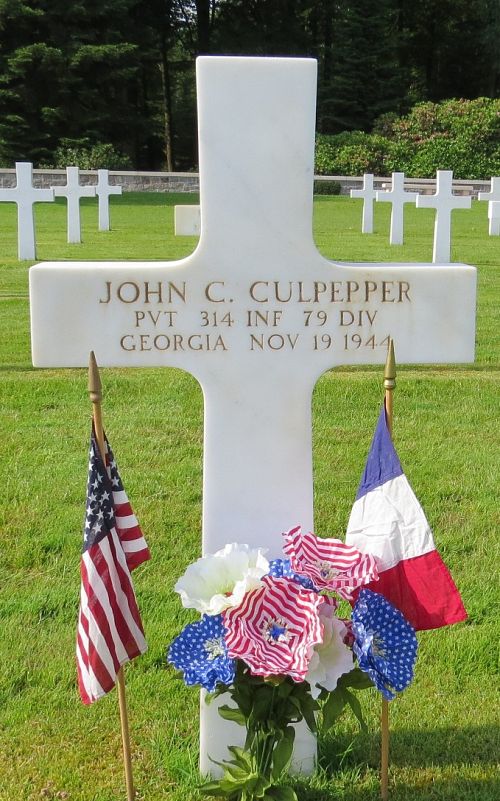 Pvt John C. Culpepper worked on a farm before he enlisted at Camp Blanding, Florida on 24 March 1944.He was killed by artillery shell fragments.