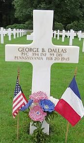 Pfc. George B. Dallas attended 2 years of high school and was employed at I T Circuit Breaker Company.He enlisted on 25 March 1944 in New Cumberland, Pennsylvania.