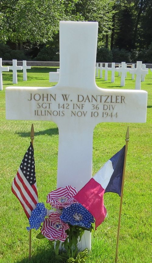 Sgt John W. Dantzler enlisted at Camp Grant, Illinois on 21 Fenruary 1942.He was reported wounded in action in February 1944, July 1944 and August 1944 (bullet wounds in the arm and thigh).