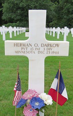 Pvt Herman O. Darkow was working in the steam handling department of the U.S. Civilian Conservation Corps in Lake City, Minnesota.Source of information: Leo Minne, www.abmc.gov, www.wwiimemorial.com, www.ancestry.com - 1930/1940 Census / Headstone and Interment Record / U.S. WWII Draft Cards Young Men / U.S. WWII Hospital Admission Cards, History 3rd Infantry Division WWII
