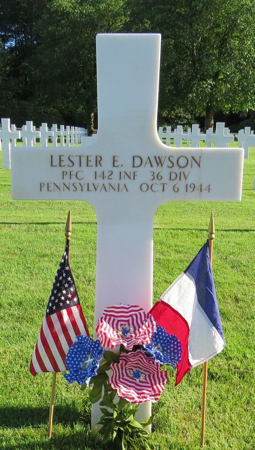 Pfc Lester E. Dawson enlisted in Greensburg, Pennsylvania on 8 March 1943.Source of information: André Koch, www.abmc.gov, www.wwiimemorial.com, www.archives.gov - WWII Enlistment Record / www.ancestry.com - Headstone and Interment Record / U.S. WWII Draft Cards Young Men / 1930/1940 Census / Pennsylvania, Veteran Compensation File WWII / 142ndaar-.pdf / https://36th-id.frb.io