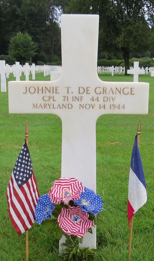 Cpl Johnie De Grange was employed at Hotel Frederick.He enlisted in Baltimore, Maryland on 22 February 1943 and sent overseas in September, 1944.