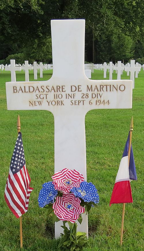 Sgt Baldassare De Martino was a driver before he enlisted at Fort Dix, New Jersey on 10 March 1942.He was first buried at the Temporary American Military Cemetery in Solers, France.