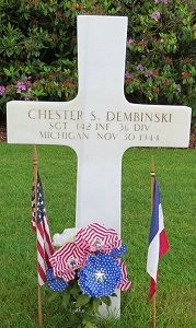 Sgt Chester S. Dembinski was employed by the Detroit Gear & Axle Company and enlisted in February 1943.Source of information: André Koch, Kathy McDermott, www.abmc.gov, www.wwiimemorial.com, www.ancestry.com - Headstone and Interment Record / U.S. WWII Draft Cards Young Men, 1940-1947 / 142ndaar-.pdf / https://36th-id.frb.io