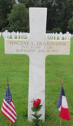 Pvt Vincent L. Di Giovanni attended high school for three years and was a branman, employed by the Crown Cork And Seal Co. before he enlisted in Baltimore, Maryland on 21 July 1944.He was killed by artillery shell fragments at his head.