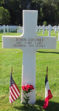 Pfc John Droney attended high school for four years and was a salesman employed by L.B. Price Mercantile Co.He enlisted at Fort McPherson, Georgia on 1 April 1944.