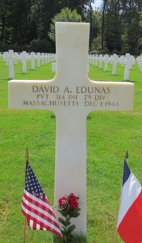 Pvt David A. Edunas attended high school for two years and was a welder and flame cutter before he enlisted in Boston, Massachusetts on 16 February 1943.He was killed by artillery shell fragments to his face and neck.