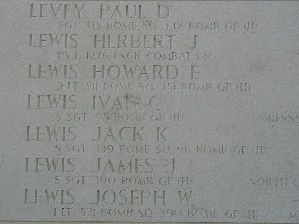 Jack Lewis is memorialized at Highland Burial Park in Danville, Virginia. He attended Dan River High School.He entered the service in June, 1942 and went overseas in April.