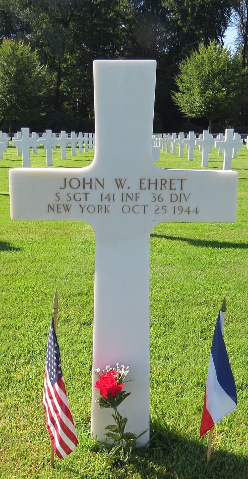 S/Sgt John W. Ehret enlisted in New York City, New York on 3 March 1942.Source of information: André Koch, www.abmc.gov, André Koch, www.abmc.gov, www.wwiimemorial.com, www.archives.gov – WWII Enlistment Record, www.ancestry.com - Headstone and Interment Records / 141aar-October-November-1944.pdf / https://36th-id.frb.io