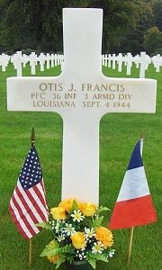 Pfc Otis J. Francis was employed at Versaggi Shrimp Company.He was first buried at Temporary American Military Cemetery Solers, France.