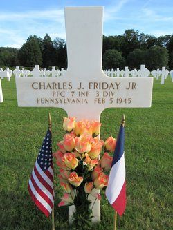 Pfc Charles J. Friday attended high school for four years and was a checker employed by the S.M. Dye Mfg. Co.He enlisted in Philadelphia, Pennsylvania on 27 July 1943 and was sent overseas in January 1944.