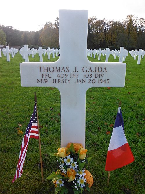 Pfc Thomas J. Gajda attended East Rutherford High School for two years.He enlisted in Newark, New Jersey on 7 May 1943. He trained at Camp Hood, Texas and Camp Blanding, Florida.
