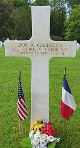 Pfc Joe A. Gallegos enlisted on 26 March 1942.He died of wounds in the 109th Evacuation Hospital that was operating in Metz at that time.