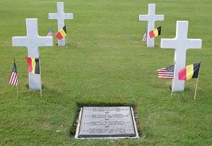 In August 1947 four crew members were positively identified and returned to the USA. At the request of next of kin the unidentified were buried in Ardennes in two adjoining graves. There is a gravestone between the two crosses with the names of the buried crewmen. Joseph J. Burghardt and John T. Carmichael are buried in separate graves.