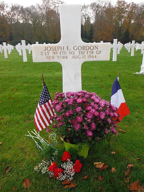 After escorting bombers to Toulon, France, the escorting fighters began to draw ground fire. Lt Gordon's airplane was hit and crashed.2nd Lt Joseph E. Gordon was first buried at the Temporary American Military Cemetery in Champigneul, France.