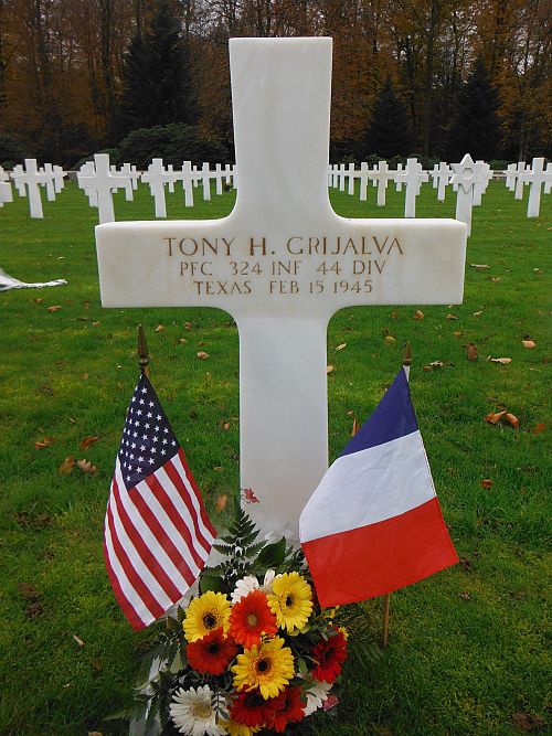 Pfc Grijalva was awarded the Silver Star Medal for his action of which this story excists:When Jerry machine gun and rifle fire from the house ahead held up the advance of their company, Pvts Robert E. LeMay, Prospect, Ohio and Tony H. Grijalva. San Elizarie, Texas, decided to do something about it. The two 44th Division dough-feet crawled forward directly toward the house, despite frenzied fire from the Nazis inside.