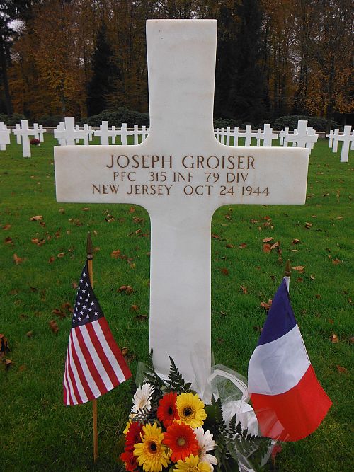 Pfc Joseph Groiser attended high school for two years and was a barber before he enlisted in Newark, New Jersey on 7 November 1942.He was killed by small arms fire artillery shell fragments.