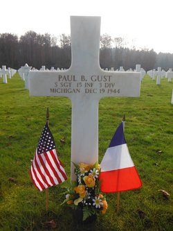 S/Sgt Paul B. Gust was a janitor, employed by the Oswosso County Club before he enlisted in Kalamazoo, Michigan on 3 December 1942.He was killed by artillery shell fragments.