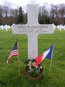 Pvt Edwin W. Hallstrom graduated from Garfield High School and attended 4 year of college. He was an inspector employed by the Pacific Fruit & Produce Co. before he enlisted in Seattle, Washington on 19 February 1944.In November 1944, he was wounded in action by artillery shell fragments in the abdomen and intestine. He died of his wounds on 7 December 1944. The exact location is not known.