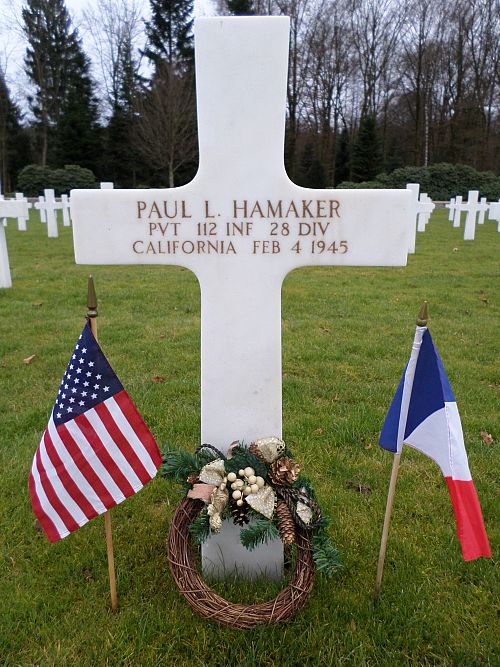Pvt Paul L. Hamaker worked on a farm before he enlisted at Fort MacArthur, California on 29 June 1944.Source of information: Peter Schouteten, www.abmc.gov, www.wwiimemorial.com, www.archives.gov - WWII Enlistment Record, www.ancestry.com - Headstone and Interment Record / Hamaker Family Tree / 1940 Census, http://112th-infantry.blogspot.com