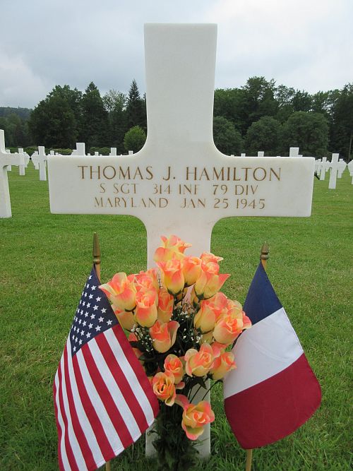 S/Sgt Thomas J. Hamilton worked on a farm before he enlisted in Baltimore, Maryland on 18 June 1942.He was killed by artillery shell fragments to his stomach and back.