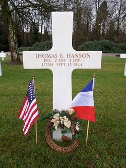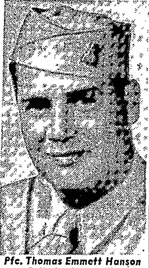 Pfc Thomas E. Hanson attended high school for four years and was employed by the State of Utah, Secretary of State.He enlisted at Fort Douglas, Utah on 14 March 1943.