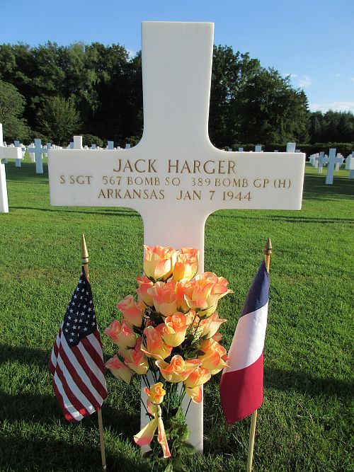 Multiple bombers were shot down by German fighters on the return flight, including this airplane. It went down at about 13:15 hrs.He was first buried at the Temporary American Military Cemetery in Solers, France.