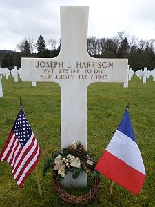 Pvt Joseph J. Harrison enlisted in Newark, New Jersey on 5 November 1942.Source of information: Peter Schouteten, www.abmc.gov, www.wwiimemorial.com, www.archives.gov – WWII Enlistment Record, www.ancestry.com - Headstone and Interment Record / 1940 Census, http://www.trailblazersww2.org