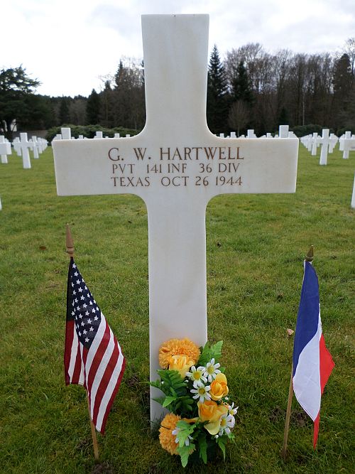 Pvt G. W. Hartwell enlisted in Lubbock, Texas on 10 November 1943.Source of information: André Koch, www.abmc.gov, www.wwiimemorial.com, www.archives.gov - WWII Enlistment Record, www.ancestry.com - Headstone and Interment Record / U.S. WWII Draft Cards Young Men / 1930/1940 Census / Indiana, Birth Certificates / 36thID-roster-part-1.pdf / 141aar-October-November-1944.pdf