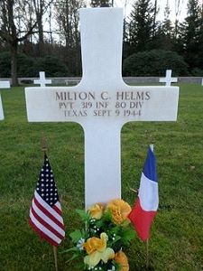 Pvt Milton C. Helms attended Garnersville High School for two years and worked on the family farm.He enlisted at Camp Wolters, Texas on 22 February 1944 and was sent overseas early August 1944.