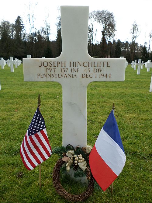 Pvt Joseph Hinchliffe attended high school for 1 year and was a welder before he enlisted in New Cumberland, Pennsylvania on 26 April 1944.Source of information: Peter Schouteten, www.abmc.gov, www.wwiimemorial.com, www.archives.gov - WWII Enlistment Record, www.ancestry.com - Headstone and Interment Record / Pennsylvania Veteran Compensation Application Files WWII, http://www.45thdivision.org