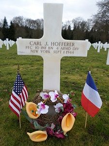 Pfc Carl J. Hofferer enlisted at Camp Upton Yaphank, New York on 12 January 1942.He was first buried at the Temporary American Military Cemetery of Champigneul, France.