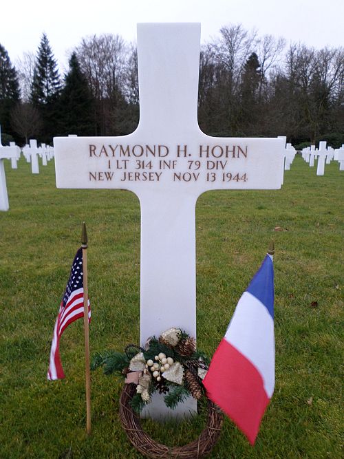 1st Lt Raymond H. Hohn attended high school for one year before he enlisted in San Francisco, California on 5 June 1941.Source of information: Peter Schouteten, www.abmc.gov, www.wwiimemorial.com, www.archives.gov - WWII Enlistment Record, www.ancestry.com - Headstone and Interment Record / U.S. WWII Draft Cards Young Men / New Jersey Marriage Index, Combat History 314th Infantry Regiment