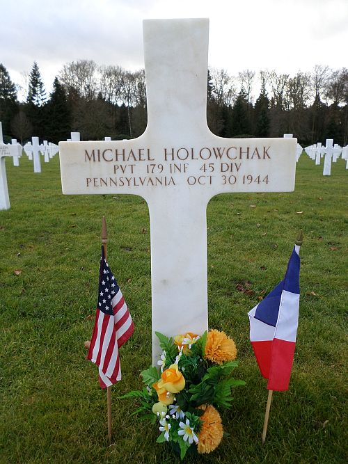 Pvt Michael Holowchak enlisted in Pittsburgh, Pennsylvania on 21 October 1943.Source of information: Peter Schouteten, www.abmc.gov, www.wwiimemorial.com, www.archives.gov - WWII Enlistment Record, www.ancestry.com - Headstone and Interment Record / Pennsylvania Veteran Compensation Application Files WWII / Alexandroff Boehm Family Tree / Pennsylvania Marriages / 1930 Census, http://www.45thdivision.org, www.findagrave.com