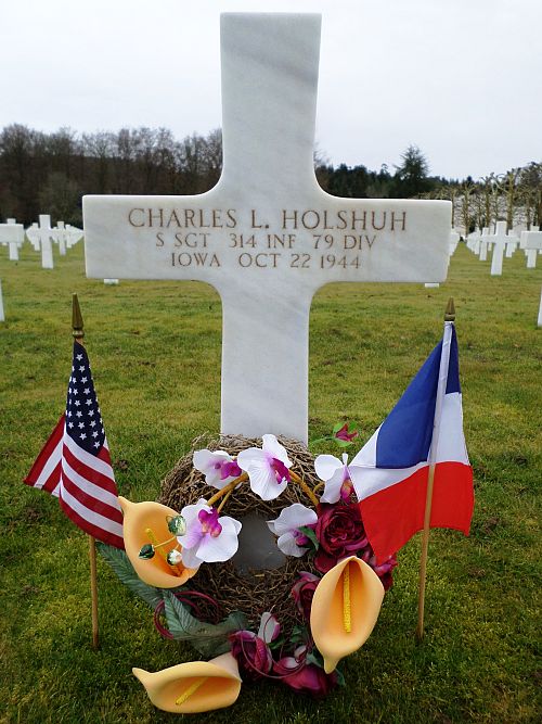 S/Sgt Charles L. Holshuh attended high school for three years before he enlisted at Fort Crook, Nebraska on 9 June 1942.He was killed by artillery shell fragments.